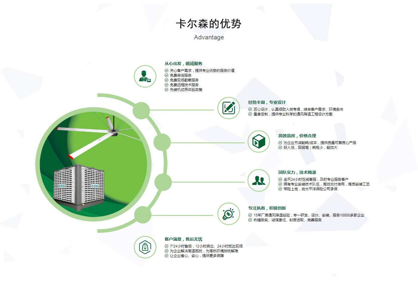 應用范圍: 適用于高溫或有異味的車間:熱處理廠、鑄件廠、塑料廠、鋁型材廠、制鞋廠、皮件廠、電鍍廠、印染廠等各種化工廠等。 適用于勞動密集型企業(yè):服裝廠,各類裝配車間,網(wǎng)吧等。 適用于需要降溫又需要一定濕度的場所:棉紡廠、毛紡廠、麻紡廠、織布廠、化纖廠、經(jīng)編廠、加彈廠、針織廠、絲織廠、襪廠等各類紡織廠。 適用于:倉儲物流領(lǐng)域、園藝溫室大棚通風降溫、畜牧場降溫等場所。 全國服務(wù)熱線:13960350919